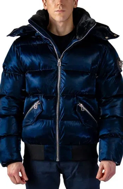 Bumnester Water Resistant Hooded Puffer Jacket In All Wet Navy