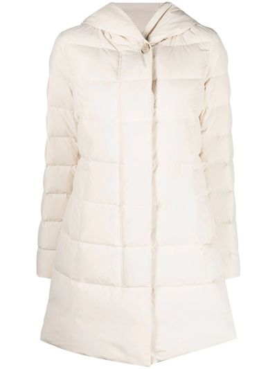 Long Hooded Quilted Jacket And Pockets In Neutral