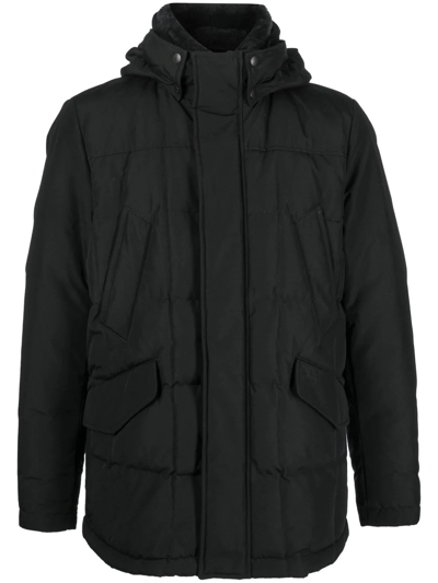 Hooded Feather Down Coat In Schwarz