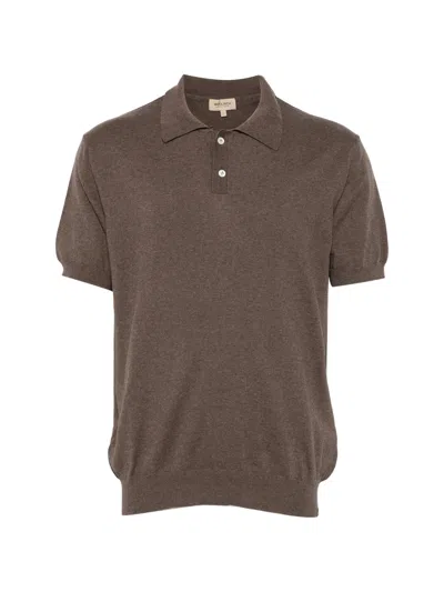 Polo Shirt Ribbed Collar Sleeves Hem In Brown