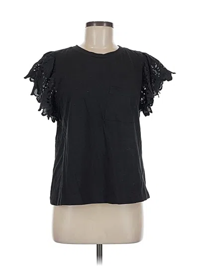Pre-owned Short Sleeve Top Black Ruffles Neckline Tops