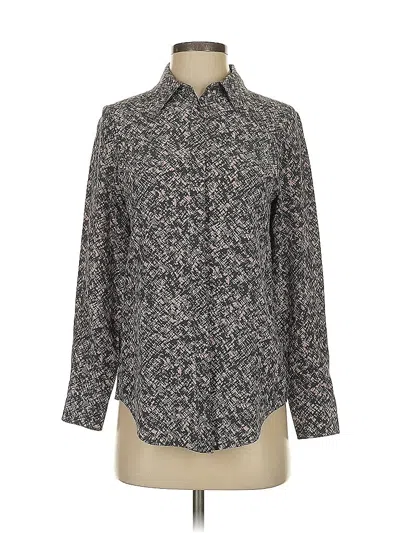 Pre-owned Long Sleeve Silk Top Gray Collared Neckline Tops