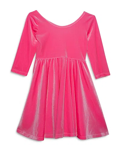 Kids' Girls Stretch Velvet Twirly Dress In Hot Pink