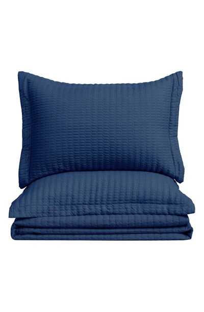 Channel Stitch 3-piece Jersey Quilt Set In Heathered Seaglass
