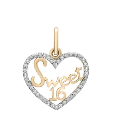 Diamond Sweet 16 Heart Charm Pendant (1/20 Ct. T.w.) In 10k Gold, Created For Macy's In Yellow Gold
