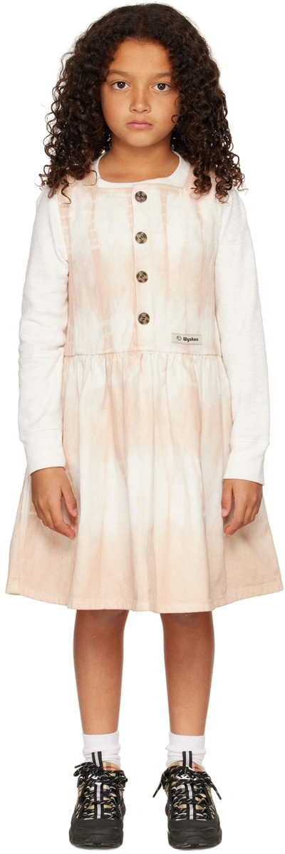 Kids Pink & Off-white Maria Pinafore Dress In Soft Pink Tie Dye