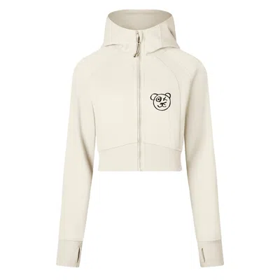 Women's Neutrals / Black Graffiti Bear Neutral Crop Hoodie Jacket In White