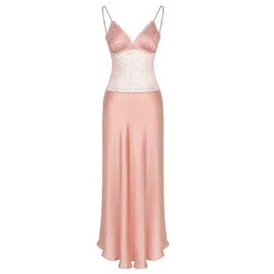 Women's Pink / Purple Satin Nightgown Elegance With Soft Lace In Pink/purple