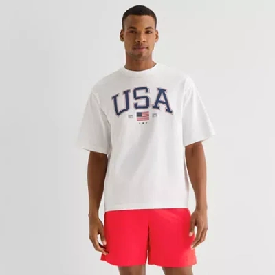 Mens Crew Neck Short Sleeve Oversized Graphic T-shirt In White