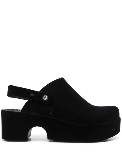Slingback Platform Velvet Mules In Black