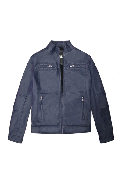 Kids' Faux Leather Casual Motorcycle Jacket In Navy
