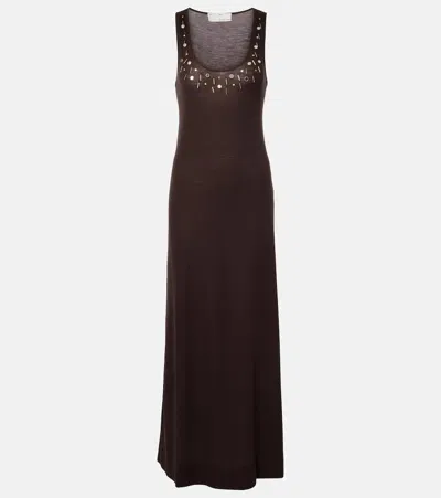 Embellished Wool-blend Maxi Dress In Brown
