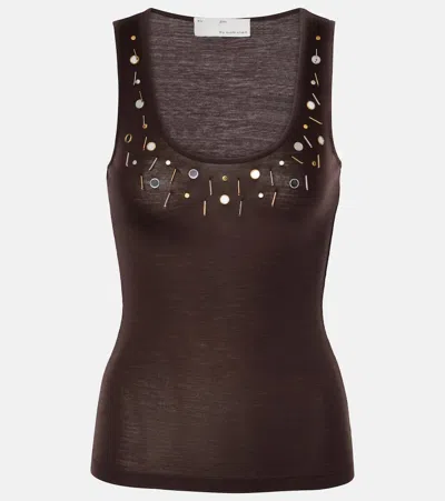 Embellished Wool-blend Tank Top In Brown