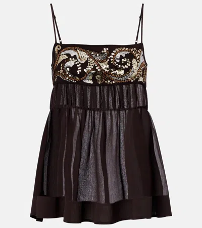 Embroidered Velvet And Tulle Midi Skirt In Neutral