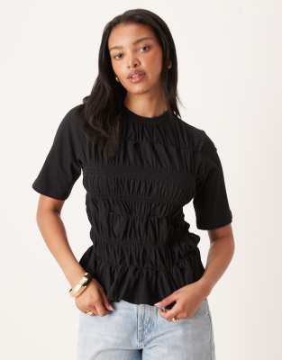 Ruched Front Jersey Top In Black