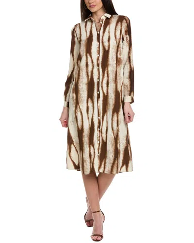 Beige Printed Shirt Midi Dress In Multi