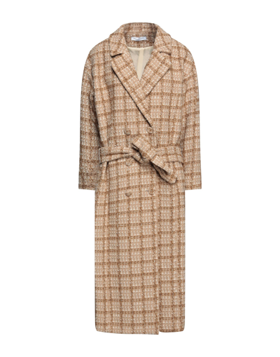 Woman Coat Camel Size 10 Polyester, Viscose In Beige