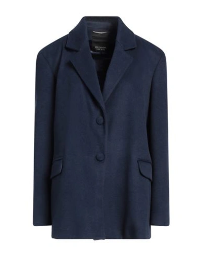 Woman Coat Navy Size 10 Polyester, Viscose In Navy Blue