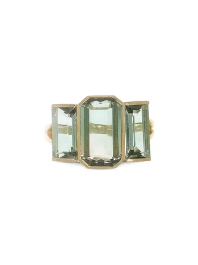 18k Yellow Gold Emerald; Aquamarine Ring In Green