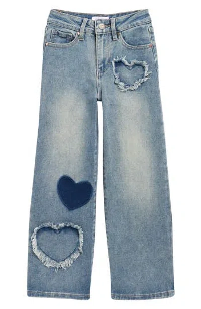 Kids' Heart Patch Wide Leg Jeans In Blue