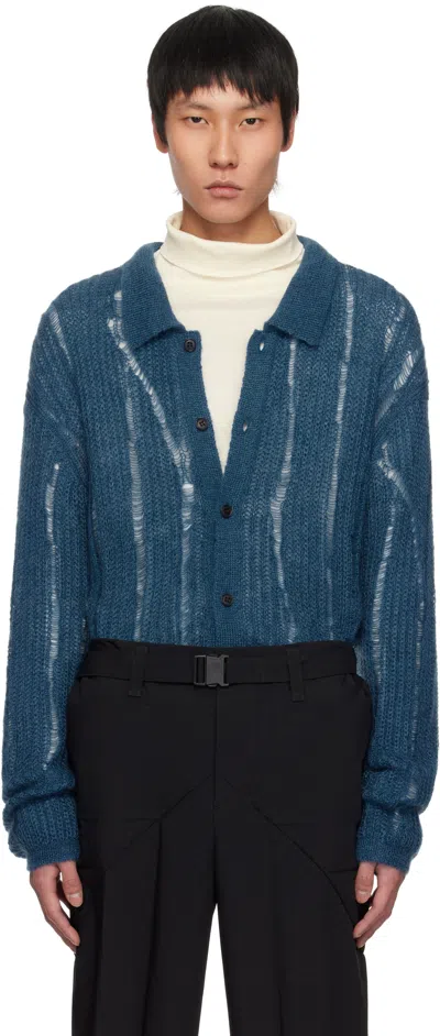 Blue Silk Kid Mohair Wool Buttoned Cardigan In Peacock