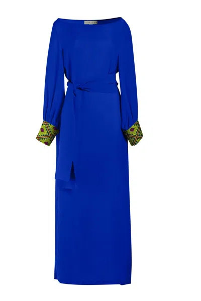 Women's Blue She's A Royal Chiapas Embroidered Kaftan — Artisanal Handcrafted Resort Dress