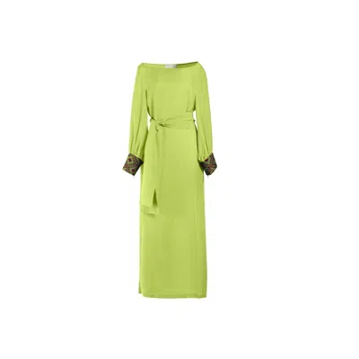 Women's Yellow Lotus Chiapas Embroidered Kaftan — Artisanal Handcrafted Resort Dress In Green