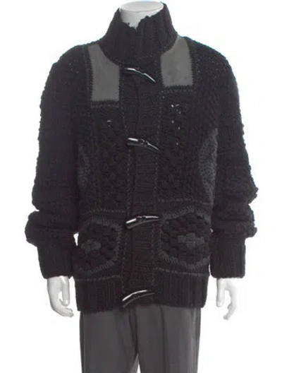 Pre-owned Virgin Wool Patterned Cardigan In Gray
