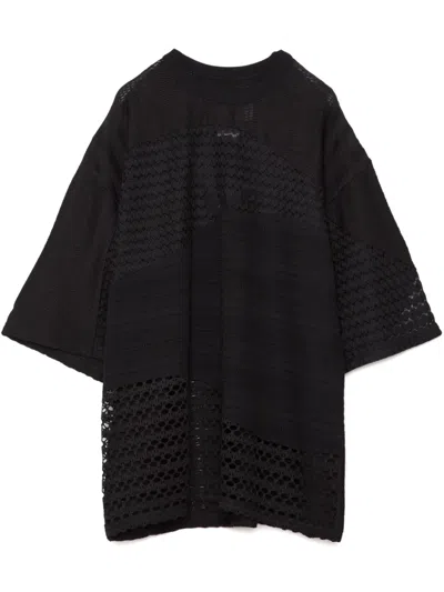 Pocket Zip-fastening Long-sleeves T-shirt In Black