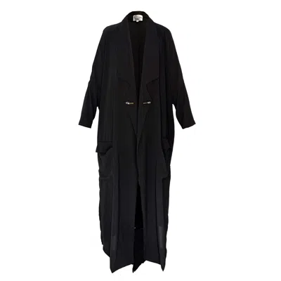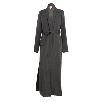 Women's Black / Grey Longline Wool-blend Belted Coat – Chevron Texture In Multi