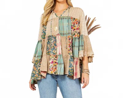 Vintage Boho Tiered Ruffle Top In Latte In Multi