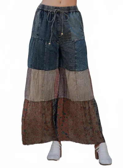Boho Tiered Wide-leg Patchwork Pants In Latte In Multi
