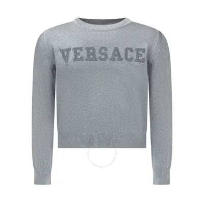 Kids Embroidered Logo Metallic Sweater In Grey