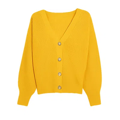 Knitted Stitch Detail Cardigan In Yellow