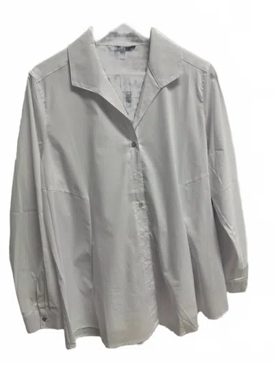 Women's Button Front Long Sleeve Shirt In White In Gray