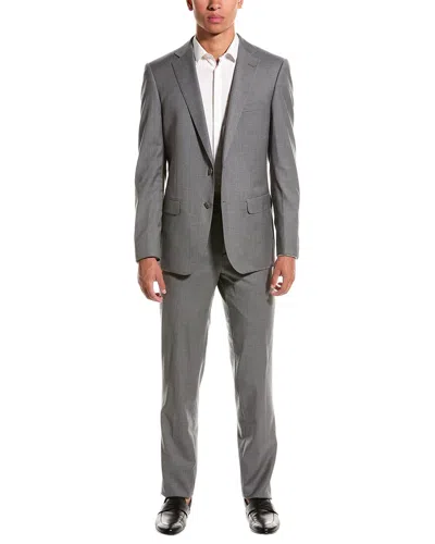 Porto Wool-blend Suit With Flat Front Pant In Gray