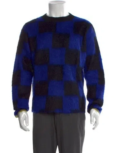 Pre-owned Plaid Print Crew Neck Pullover In Blue