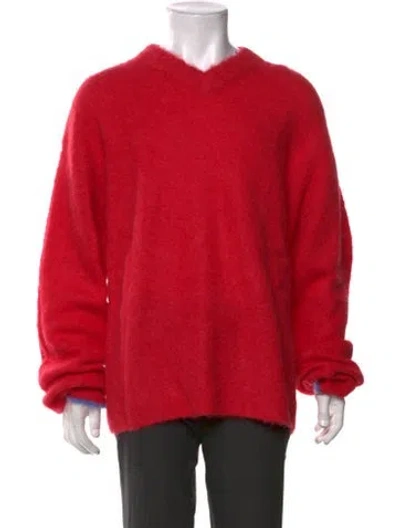Pre-owned V-neck Long Sleeve Pullover W/ Tags In Red