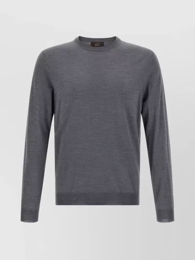 Crew Neck Wool Sweater With Ribbed Cuffs In Gray