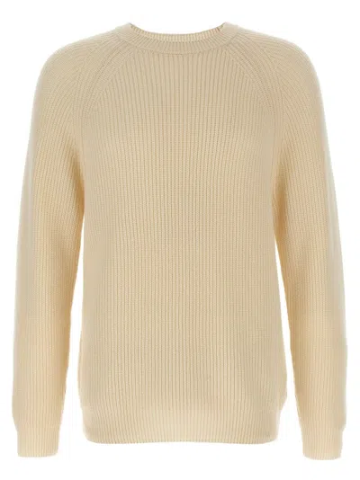Beige English Rib Wool Sweater With Crew Neck And Ribbed Details In Neutral