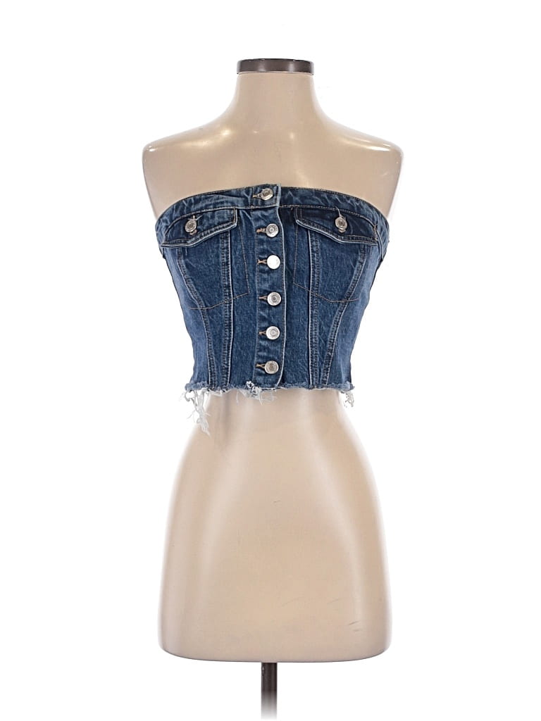 Pre-owned Tank Top Blue Strapless Neckline Tops