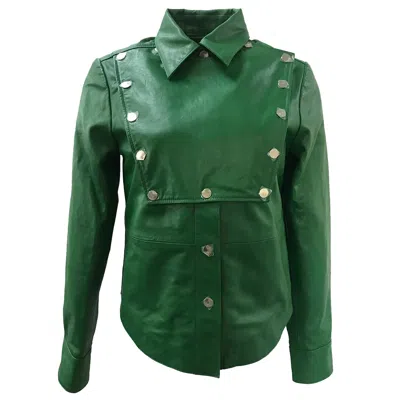 Women's The Leader- Green Beads & Fringes Leather Jacket