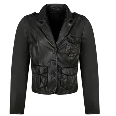 Women's Irish Mule - Black Multipocketed Leather Jacket