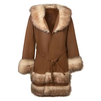 Women's Jardesca Royale - Brown Recycled Leather Long Coat Jacket