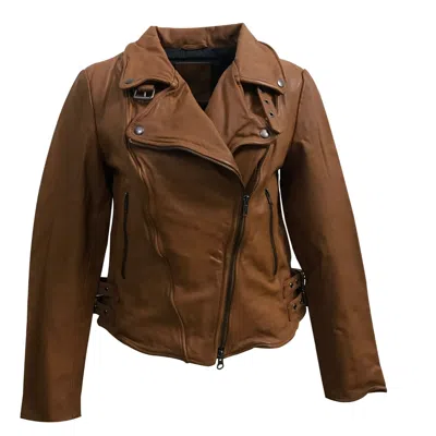 Red / White Brick Women Multipocket Leather Jacket In Red/white