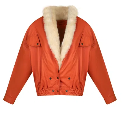 Women's Yellow / Orange Highball Orange Faux Fur Lining Bomber Leather Jacket In Yellow/orange