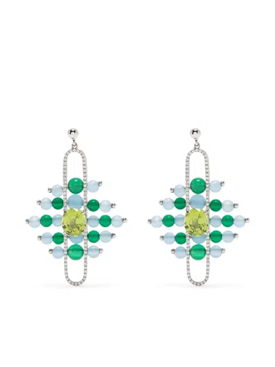 18kt White Gold Diamond Pave Impressionists Dangle Earrings In Blue