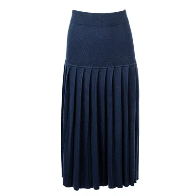 Women's Blue Silk Cashmere Pleated Skirt - Navy