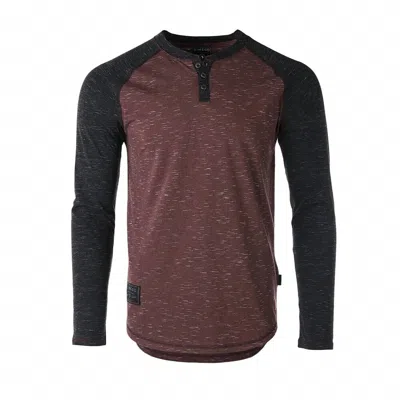 Men's Long Sleeve Arm Contrast Raglan Henley T-shirt In Maroon/black