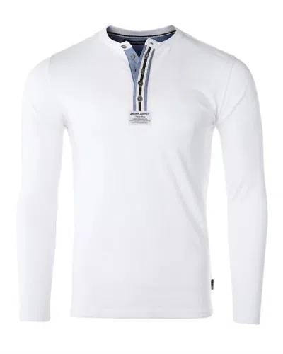 Men's Long Sleeve Oil Wash Vintage Button Henley T-shirt In White